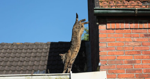 Los gatos son capaces de saltar una distancia de siete veces su tamaño sin despeinarse. Como verdaderos funambulistas y acróbatas, que no saben qué significa la palabra vértigo, son capaces de saltar y andar por estrechas cornisas y caer desde alturas considerables sin que su integridad física sufra.