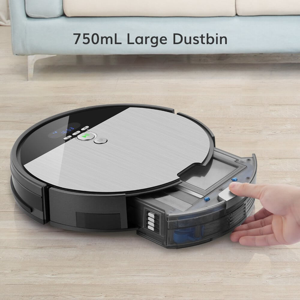 Unos suaves botones mecánicos y una pantalla LCD te avisarán en todo momento del modo de limpieza del robot aspirador. Solo tienes que presionar la tecla de comenzar y todo será como ‘barrer y fregar’.