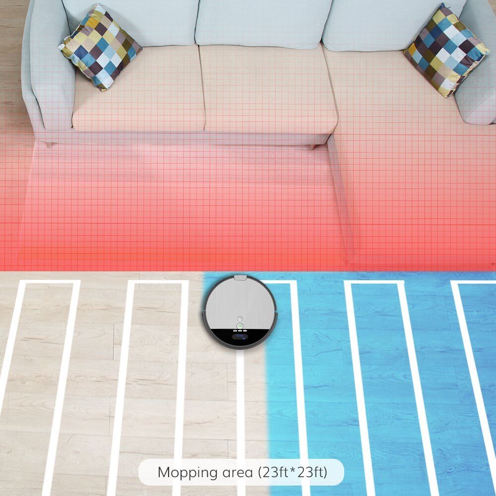 El sistema de limpieza planificada e inteligente nos permite una limpieza integral y profunda sin tener que limpiar la misma superficie dos veces. A través de un giroscopio puede corregir la ruta y evitar que haya zonas que queden sin limpiar.