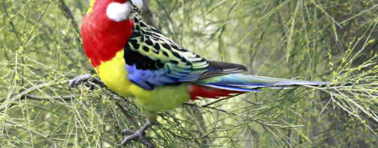 La Rosella mide unos treinta centímetros y se trata de un ave de colores muy llamativos. El plumaje de hembras y machos es muy parecido y la principal diferencia es que los machos suelen ser un poco más grandes. La principal característica de estos pájaros es el escamado de su espalda y las mejillas coloreadas.