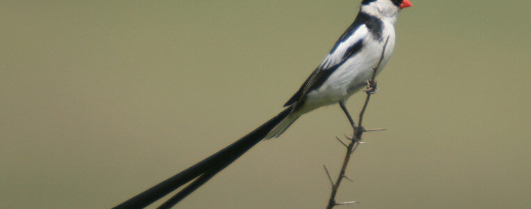 La Viuda dominicana es una pequeña y bonita ave del tamaño de un gorrión. Existen 19 especies de Viudas diferentes. La Viuda dominicana es una perfecta ave de compañía. Su característica más llamativa es su larga cola de intenso color negro.