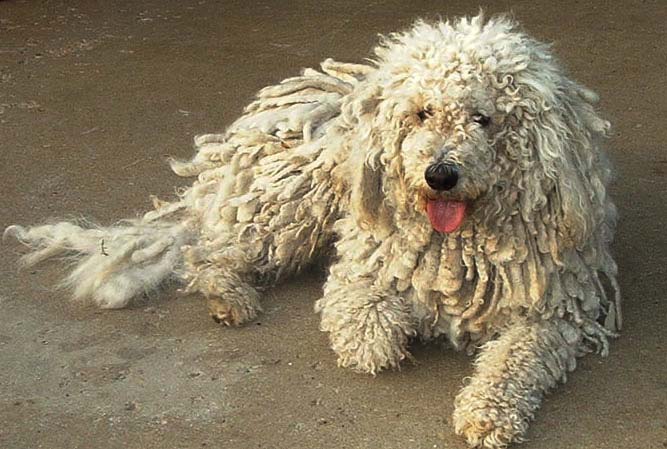 El komondor es un boyero, guardián y pastor húngaro conocido en Hungría, Eslovaquia, Transilvania y Norteamérica. Su origen es incierto aunque probablemente sea junto con el puli, el boyero más antiguo de Hungría, llegado con las primeras migraciones magyares a Panonia en el Siglo IX aunque otras fuentes consideran que su origen (junto al del Puli) pueda ser mongol y estar vinculado a la invasión mongola del Siglo XIII. Su función era la de proteger el ganado frente a osos y lobos y para ello le servía su característico pelaje a mechones que no solo lo protegía frente a las agresiones de depredadores, sino que también lo camuflaba y lo confundía entre las ovejas. En 1910 se oficializó como raza y antes de 1939 fue llevado a EEUU por los emigrantes húngaros. Allí cumple su función frente a los coyotes. Tanto es así que en la Columbia británica se usa masivamente en los últimos años y se ha dejado de perder ganado por ataques de depredadores.