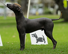El xoloitzcuintle, perro sin pelo mexicano o perro pelón mexicano tiene un origen antiquísimo e incierto que se pierde en la historia pre-colombina. Su rasgo particular sin pelo fue objeto de veneración y curiosidad por los Nahuas que consumían su carne en ceremonias rituales considerándolo como el representante del Dios “Xolotl”. La raza estuvo en varios momentos a punto de la extinción. Hoy en día es muy popular en México, especialmente la variedad miniatura. Desde 1940 es el emblema de La Federación Canófila Mexicana. La variedad con pelo, conocida por los indígenas como itzcuintle, debe nacer de ejemplares de variedad sin pelo debidamente inscritos y su cruce no está permitido.
