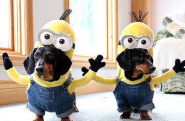 Al dueño de estos encantadores perros salchicha, se le ocurrió para celebrar la publicación de un libro que ha editado, donde los protagonistas son sus dos perros salchicha recorriendo lugares del mundo, crear dos disfraces para ellos y vestirlos así de Minions.