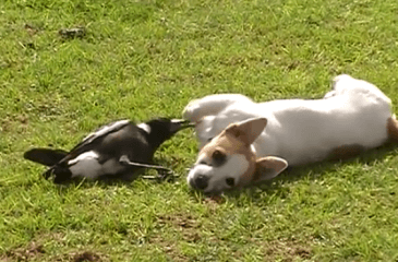 La amistad de este perro con su amiga urraca, es realmente una maravilla. Como dos adolescentes jugando, compiten entre ellos por una pinza. Aún así cuando juegan son razonables y aún sabiendo que es un juego, miden su fuerza para no hacerse daño entre ellos. Realmente unos grandes amigos que nos muestran lo bien que se lo pasan y lo mucho que se quieren.